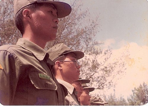 站左一.彈藥士,連級無此編制,黑牌業務兵也.他掛下士階.是71年初未經任何訓練直升的.
