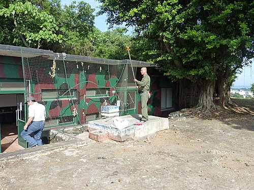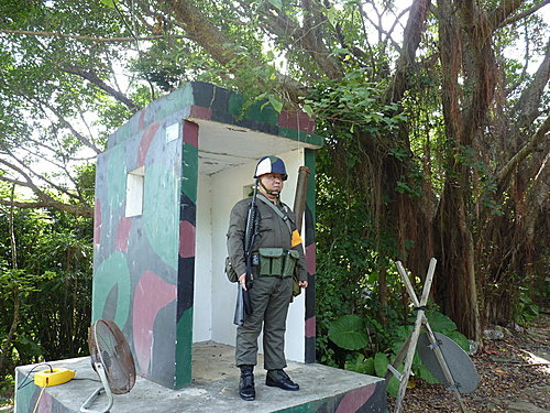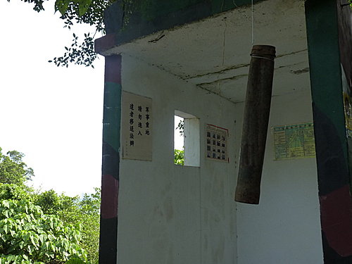 崗哨的佈置比照當年的記憶,幾張敵軍機艦識別圖及警報器,是軍友在"資源回收場"檢來