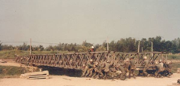 這照片是本師工兵營72年年底在燕巢下基地時所拍,他們正在接受架設倍力橋訓練.