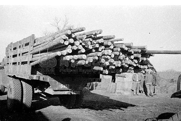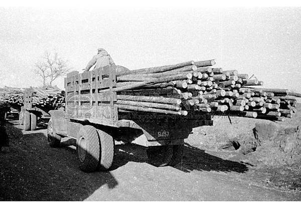 卡車戴著清掃射界後所砍伐掉的木頭.