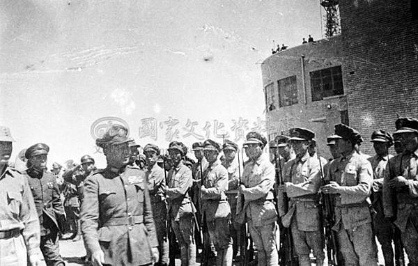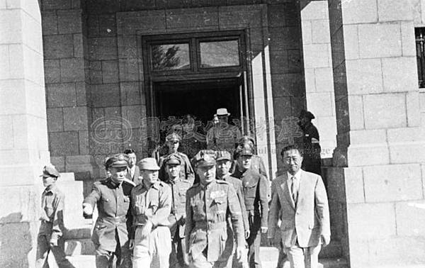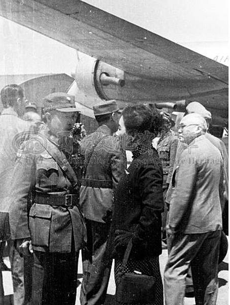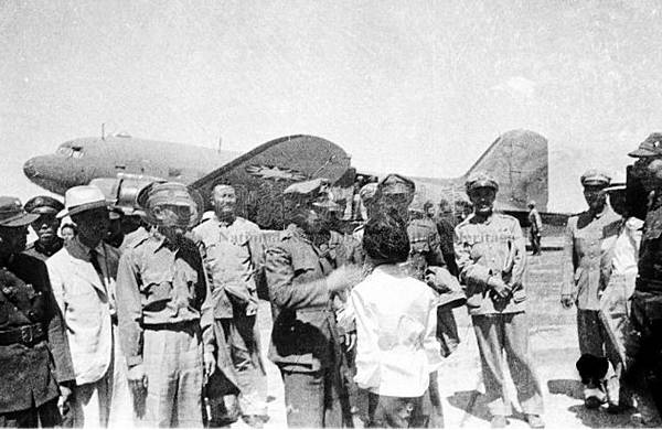 東北軍政官員在機場迎接何應欽.何此時擔任閒差無實權的軍政部長.