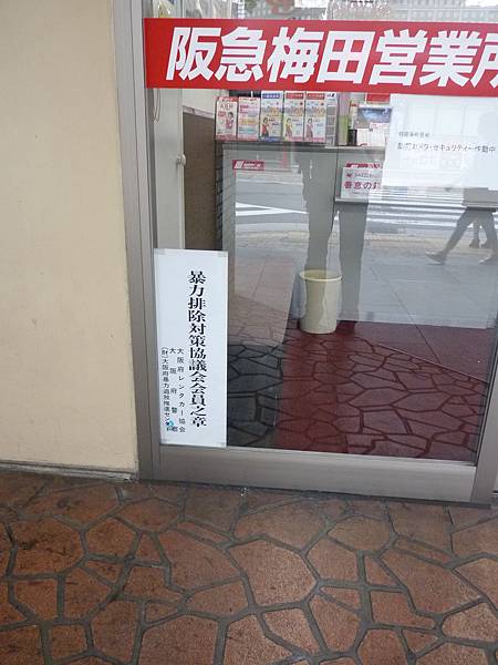 與黑社會劃清界線的標語.日本黑社會雖可合法登記,但一般民眾避之危恐不及,深怕與之