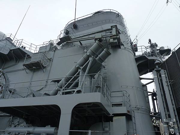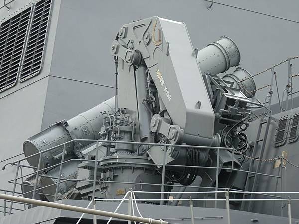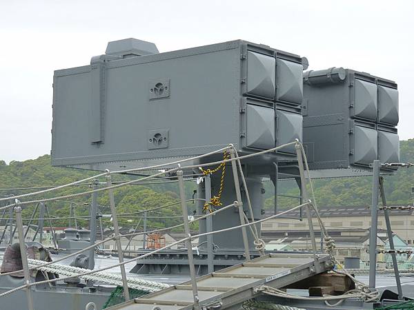 日本自製的90式反艦飛彈發射器.應該是一組四聯裝.少裝了一顆.左右兩舷各有一組發射器.