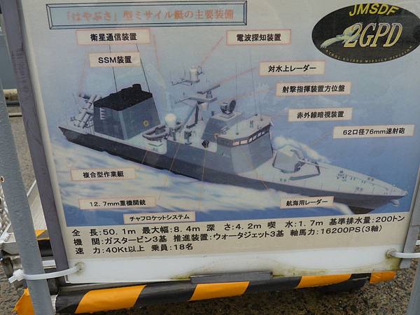 隼級飛彈快艇.僅建造6艘,以兩艘配置方式分派在佐世堡,舞鶴,北海道的余市.
