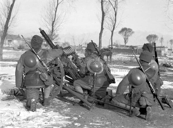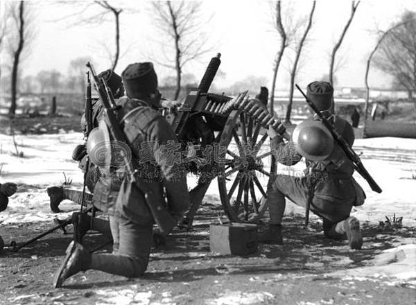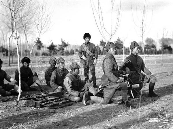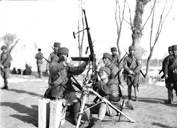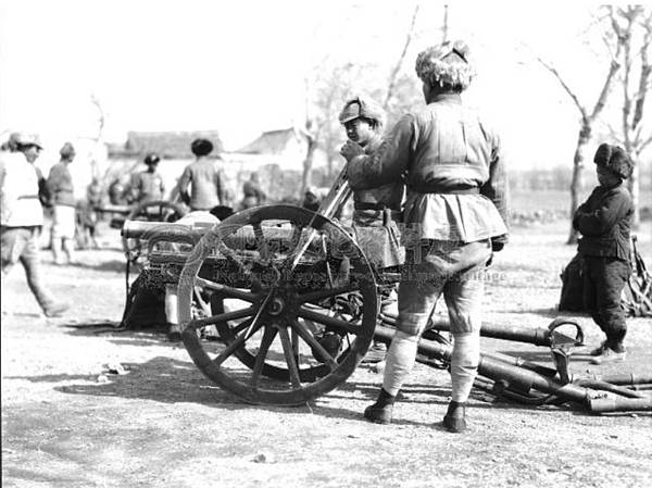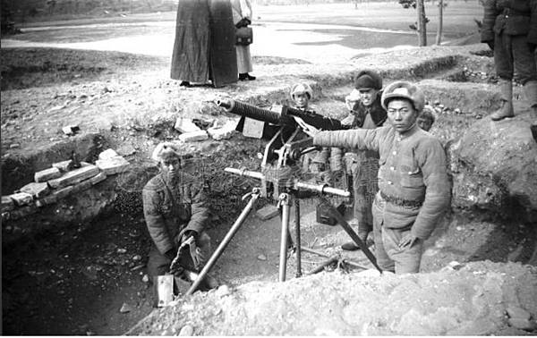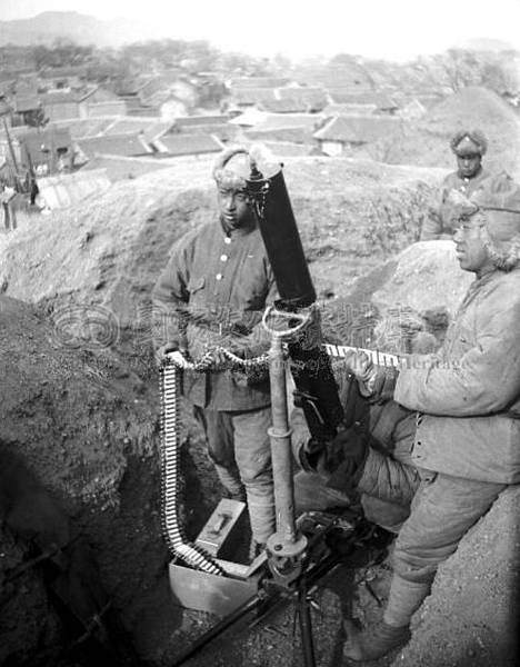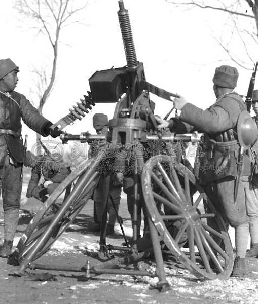 時的瀋陽兵工廠所製造.操作它的士兵頭戴英式鋼盔,根據國家文化庫原圖註解為西北軍.