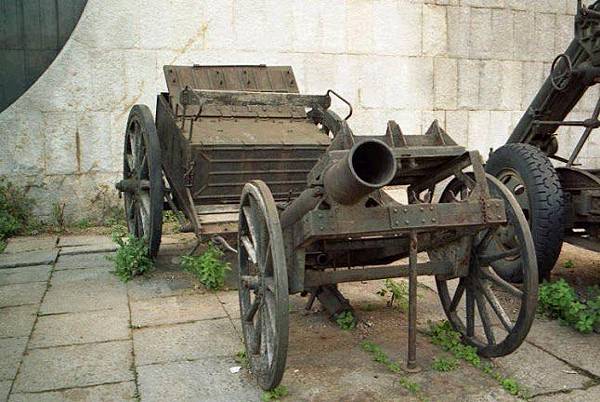 北京軍事博物館保存的150mm迫擊砲及彈藥車.