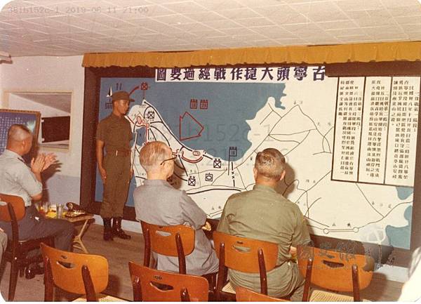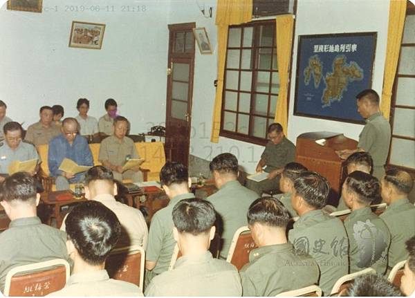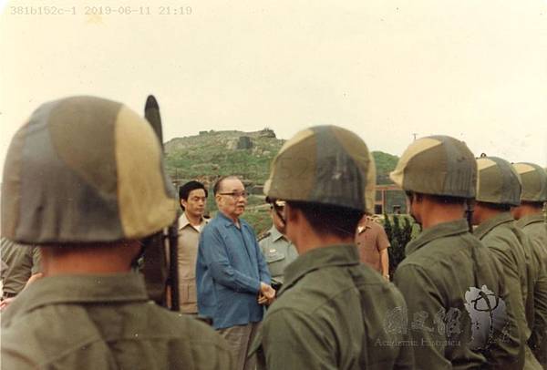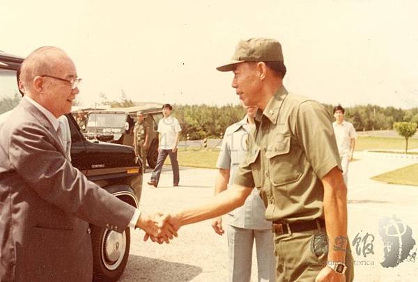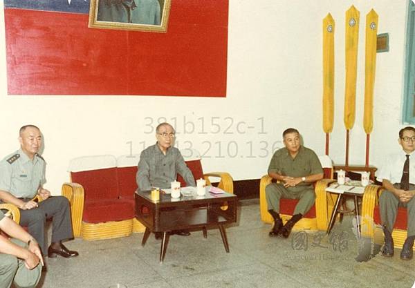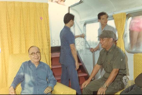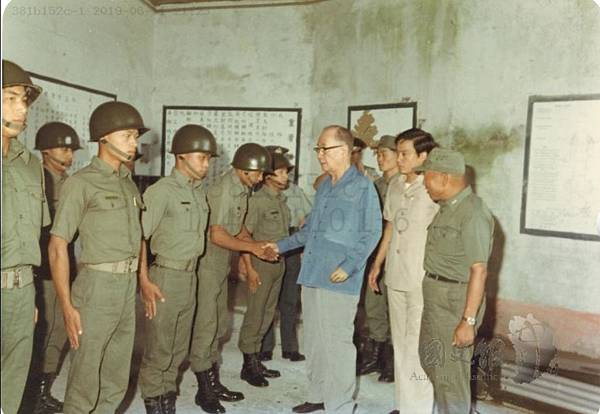 謝副總統71年9月視察馬祖,東引,陪坐者為當時東引指揮官蔣魁.
