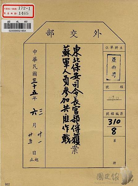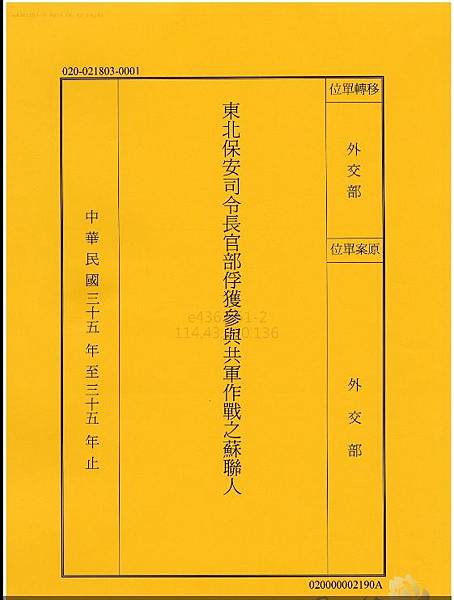 此文是當時國軍東北保安司令部發予外交部,因為軍方不知道拿這些抓到的蘇聯戰俘該怎麼