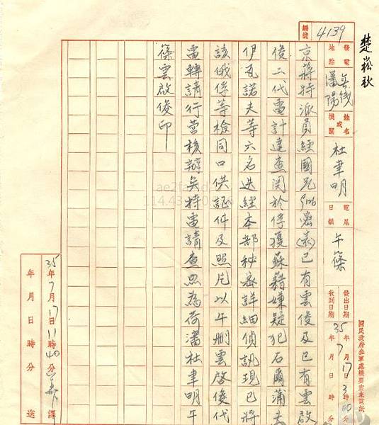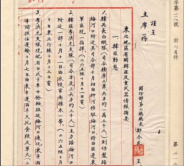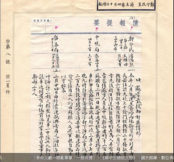 另外這是國防部二廳呈請蔣介石先生之電文,呈文者為鄭介民,戴笠過世後,由他及毛人鳳