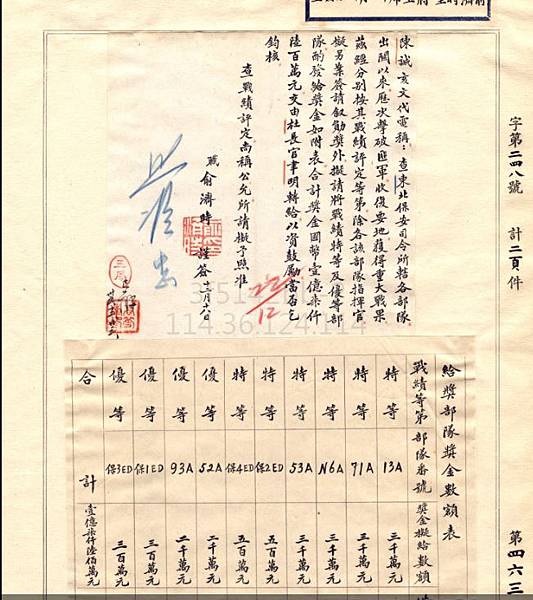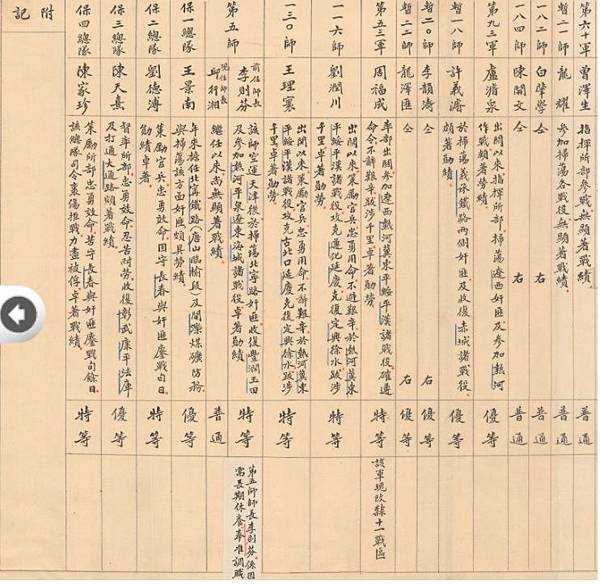 這是民國三十五年12月東北保安司令部上呈之各部隊戰功表.