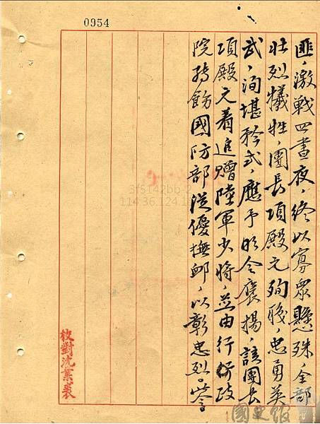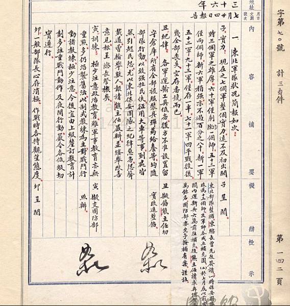 孫立人發給蔣介石電文,文中敘述部隊損失及困難,新一軍此時才出關幾個月,可見戰況