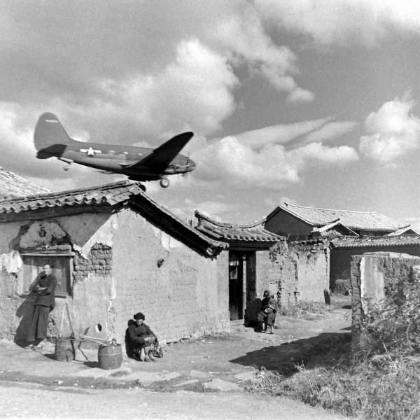 的美國運輸機載運戰略物資前往中國影像,其中也包括載運國內士兵前往印度