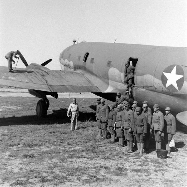 接受美軍的訓練與裝備,這是剛下C-46的中國士兵.