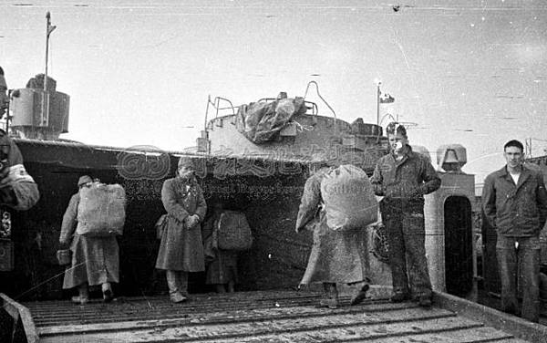 另一系列影像,日俘由火車載運至港口準備搭美艦遣返日本.