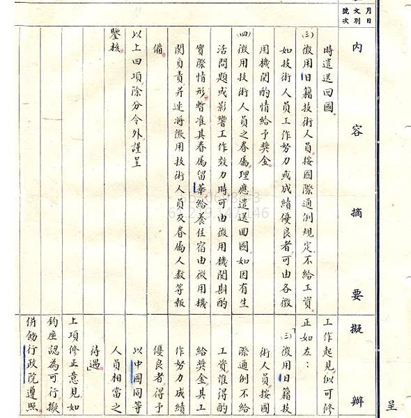 白崇禧將軍之呈文,爭取願意留華之具有技術專長之人員留華為我所用.
