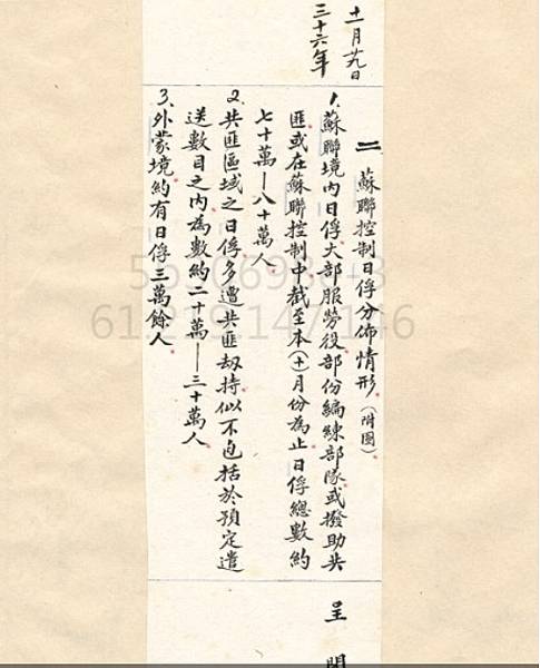 ,直到1947年1月尚有37萬餘在華.不知是否因呈文中提到美國僅協助遣返日僑俘至