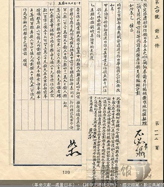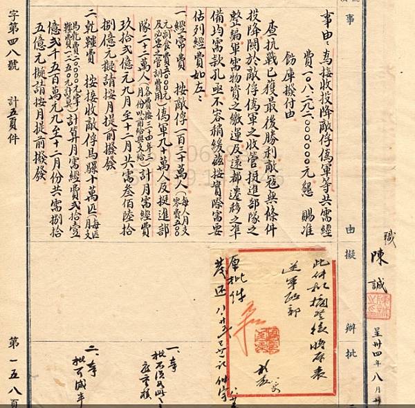 抗戰勝利後,何應欽將軍之呈文,謂日軍戰俘超過兩百萬,文中並提到派遣新一軍