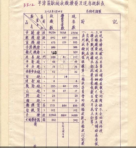 所繳交的裝備.日軍繳交武器檔案並不完整,或許是搜索不得當,也可能是檔案散失,沒