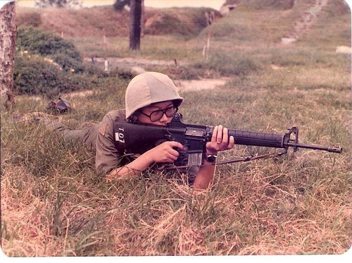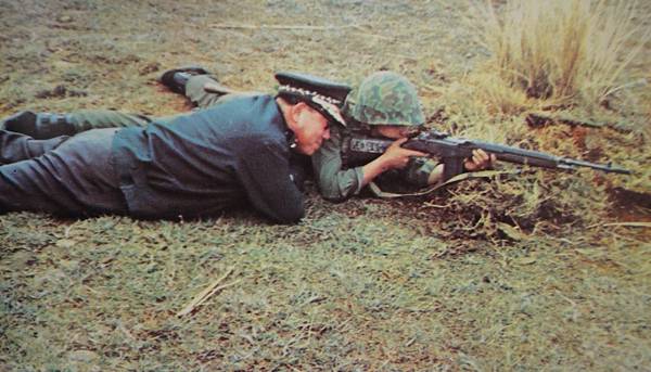 外行看熱鬧,內行看門道.這士兵所持為M14步槍之塑鋼槍托,從色澤及裝彈匣處