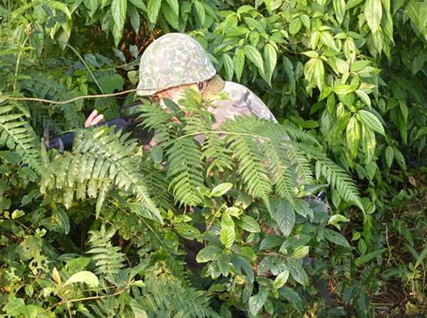 測試了三色偽裝帽之偽裝效果.效果很不錯,敵人可一目瞭然知道你躲在這裡.