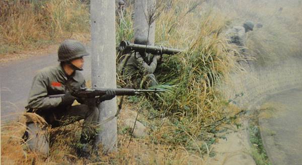 這照片有意思,共軍的假想敵竟也載上濟公帽,顯見此盔帽真是中華民國陸軍的代表物之一.