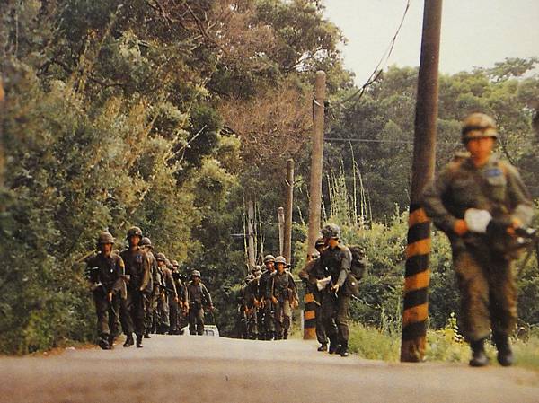 1980年蔣經國先生至金門視察151師步兵營測驗,配戴方向已經統一,藍色色塊