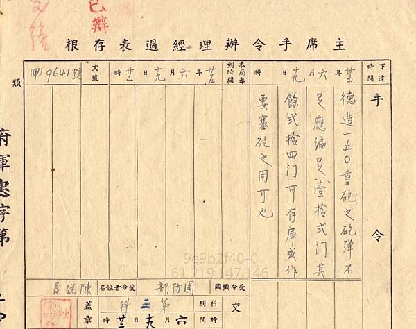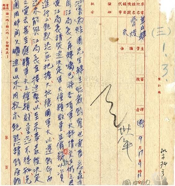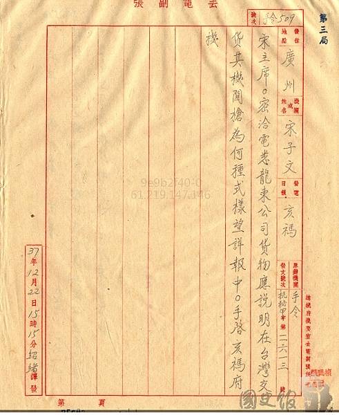 1948年12月,行政院長宋子文呈文表室法國政府手上有庫存之德國槍彈可洽購