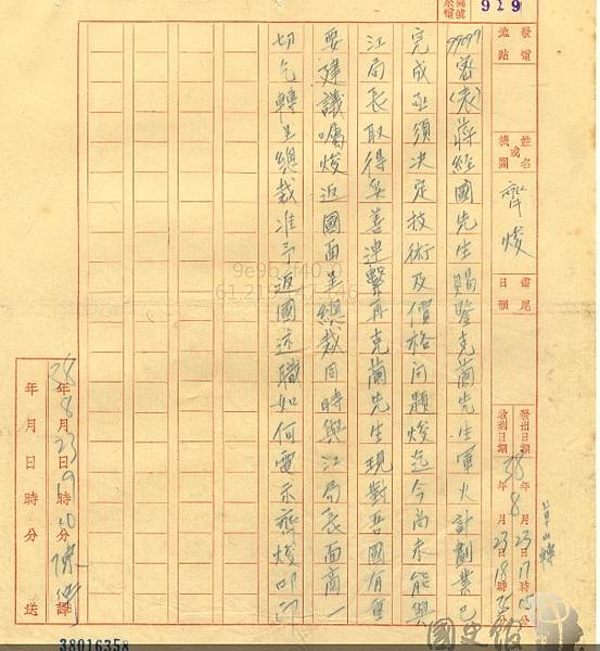 1949年齊焌發予蔣經國之電文.陳述購買德國軍火一事.