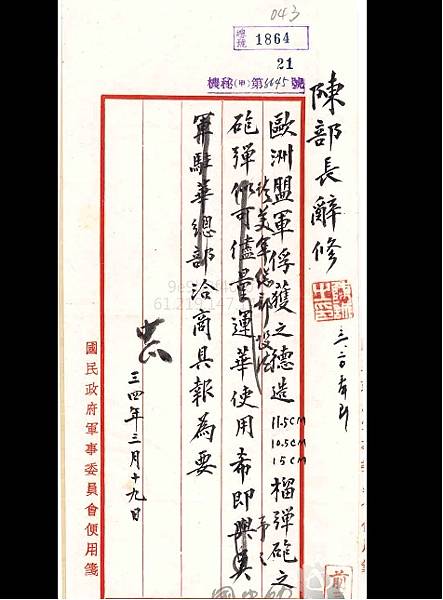 1945年3月,盟軍即將擊潰納粹,蔣委員長要國防部長去尋求德製火砲砲彈.