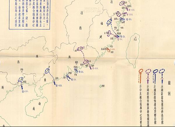 1964年10月,情報局之[奉天計劃]海上行動計劃圖,我方武裝情報人員北至山東.南達