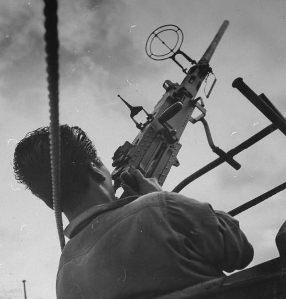 在長江北岸準備發起渡江戰役的PLA.架起50水冷式機槍防衛國軍的空襲.但此時國