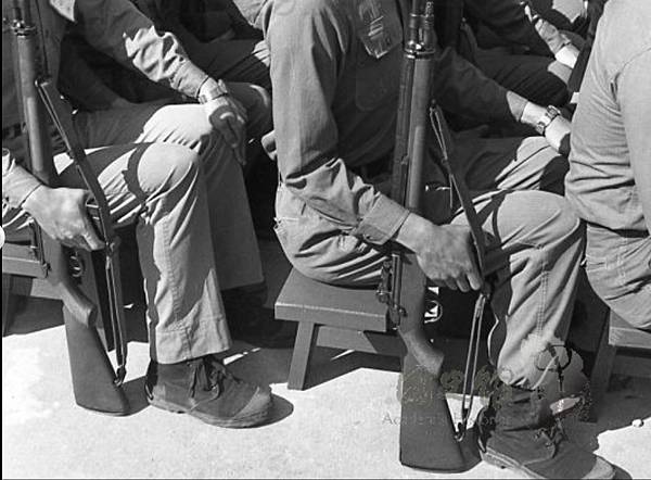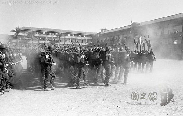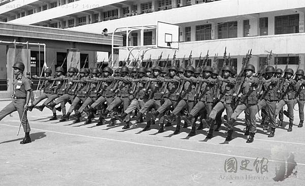 傘兵旅正步訓練,他們已換裝M16A1步槍.國軍自1970年代初陸續購入4萬多把M16A1步槍