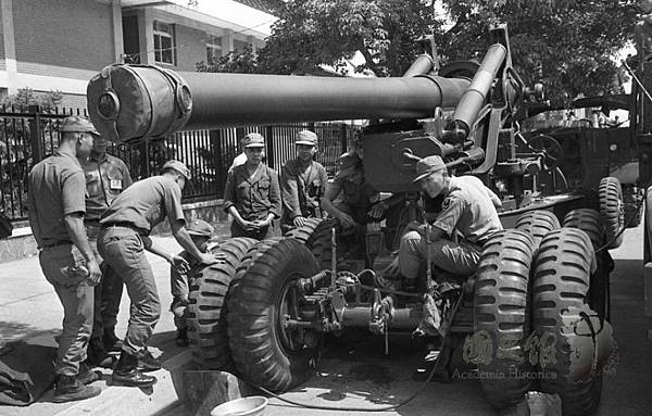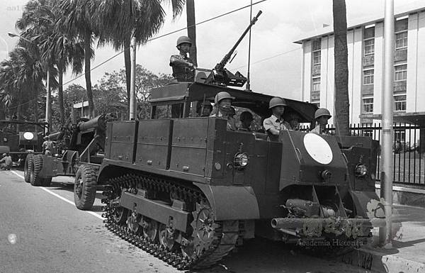 拖曳著155加農砲的M4履帶牽引車,本次閱兵155加及8吋榴各12門參加分列式.