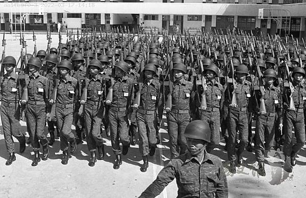 1978年國慶閱兵代號為<漢威演習>,這是首次參加閱兵大典的金馬民眾女自衛隊員.