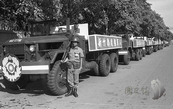 除了澎湖縣後備軍人要踢正步外,其他縣市代表則搭乘兩噸半通過閱兵臺.