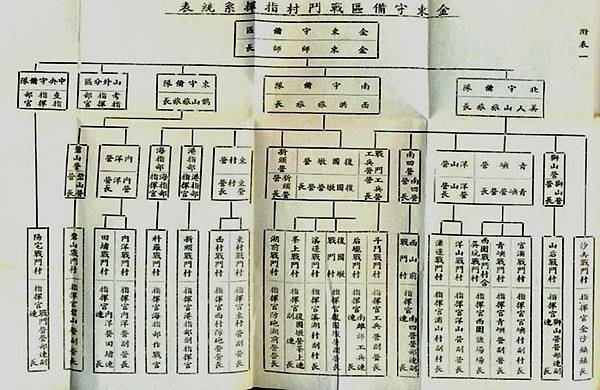 金東師民防戰鬥編組,由各營副營長擔任該聚落作戰指揮官