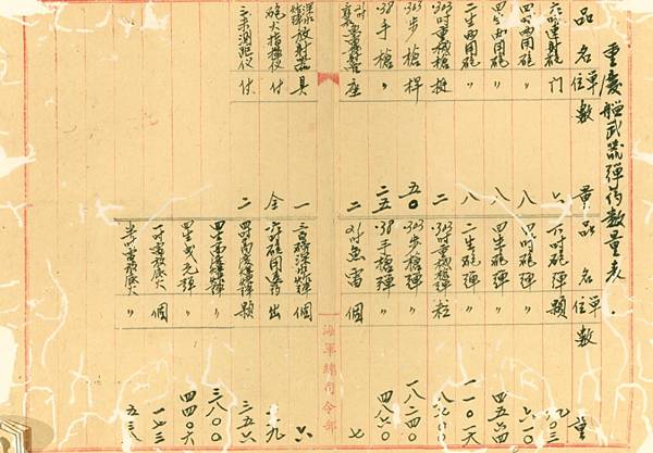 及各型火砲攜彈量,其中六吋主砲砲彈為903顆,已在塔山戰役中使用不少.
