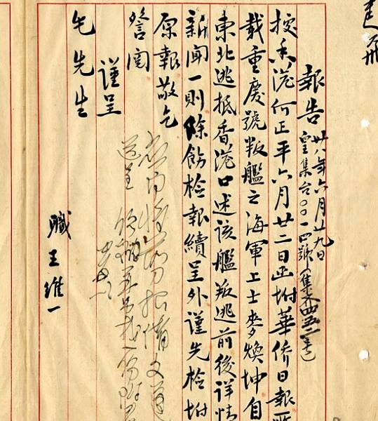 艦上官佐名單(其中一張),按調閱到檔案.重慶艦的叛變無任一軍官參與,包括艦長
