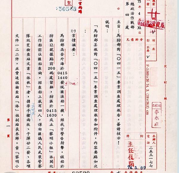 就在0415專案的前一年,中共民兵施小寧,張木珠攜大批械彈向馬祖國軍投誠.