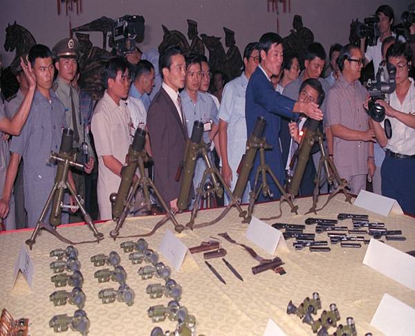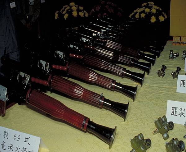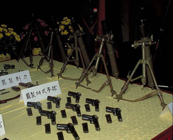 張,施二人攜來一把56-1衝鋒槍,10具69式火箭筒及5門63式60MM迫擊砲.