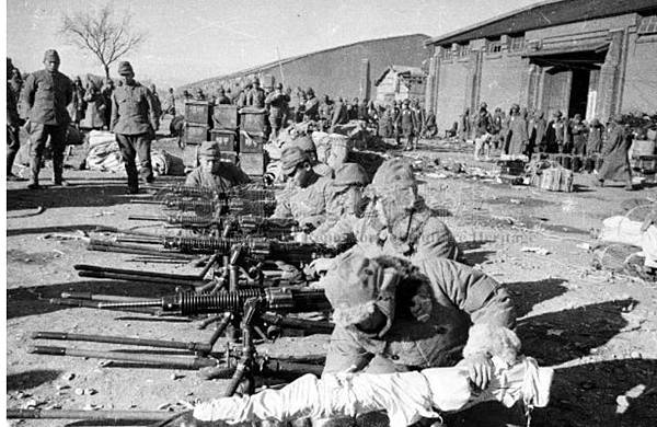 在東北作戰的國軍部隊,若不是帽上的青天白日徽.會誤會這些持著日製槍枝的是日本軍.