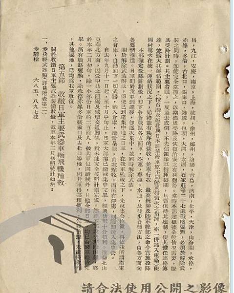 火砲12446門,砲彈2千萬顆.子彈超過一億發,內戰開打後,國府並未善用日軍留下來的兵