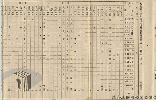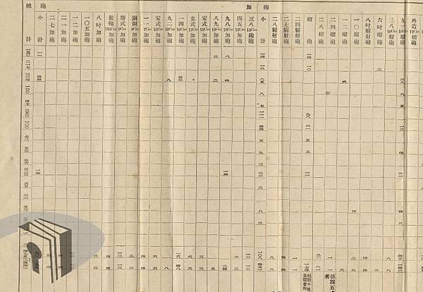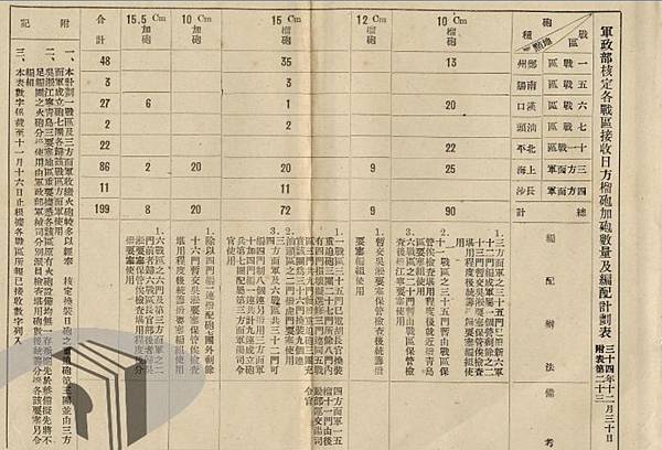 日軍火砲種類數量統計,其中有部份應該是被日軍繳獲的萬國牌國軍火砲.