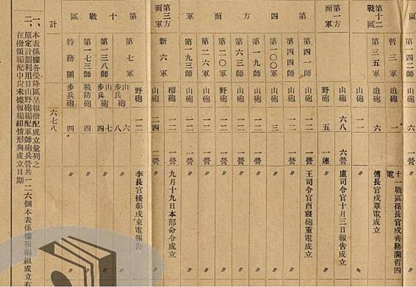各戰區部隊紛以接收之日軍火砲編成砲兵營.總計超過60個砲兵營.
