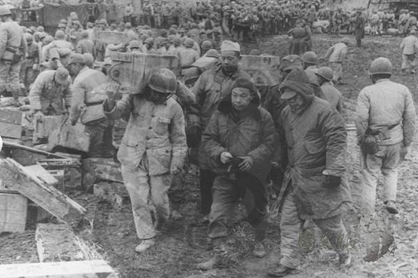 士兵搬運糧彈,蔣介石先生向來視地盤如命,若非其前緣要地一江山失守,大陳本島