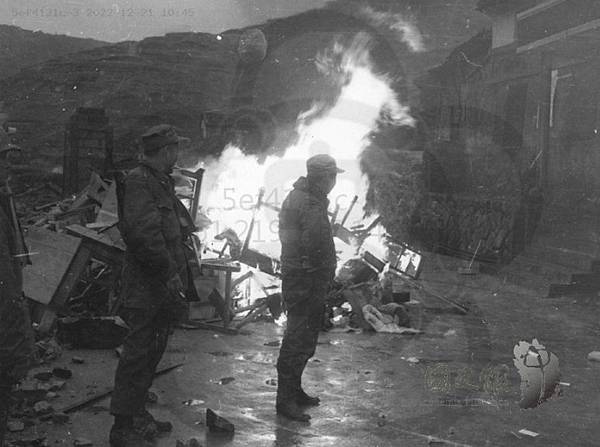 美軍工兵炸毀駐軍在島上的工事及設施.
