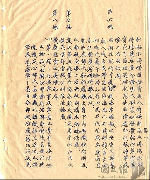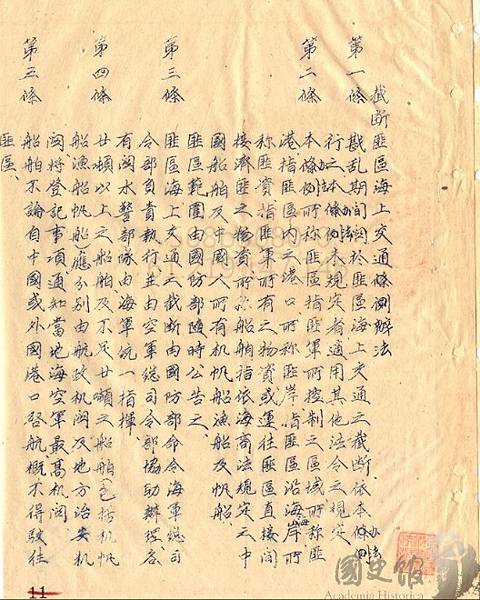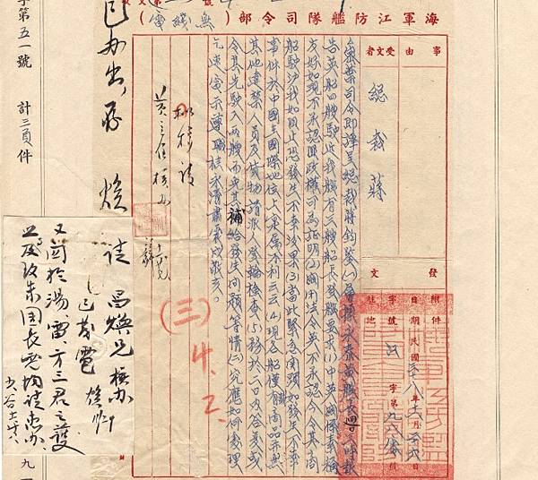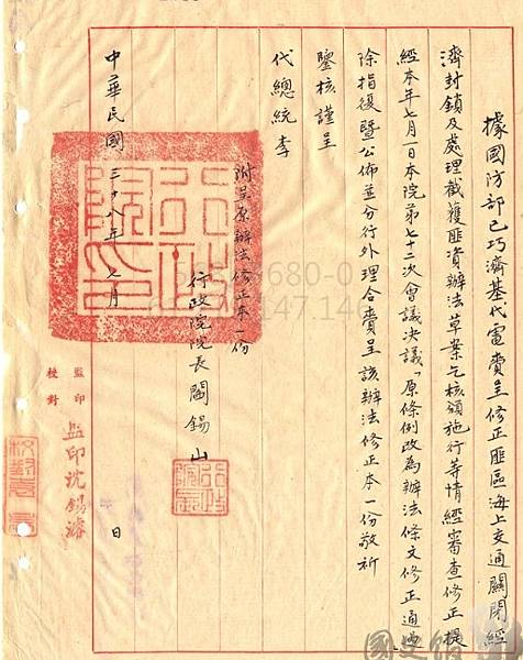 1949年7月.國府行政院長閻錫山呈報予代總統李宗仁之封鎖海上交通檔案,很顯然