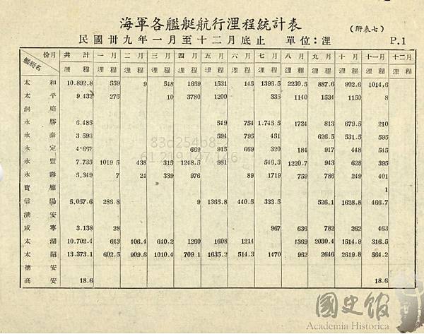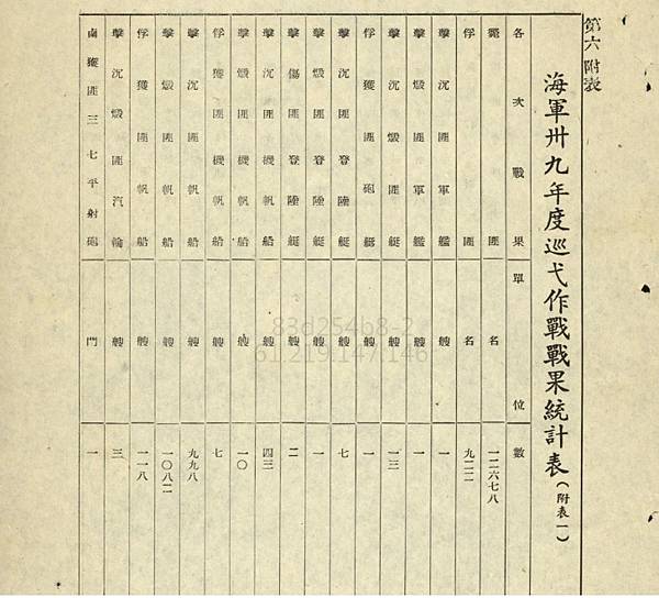 各有損傷.此表可見到各主戰艦艇航行浬程,在美國已停止援助後,這些船舶的損耗及