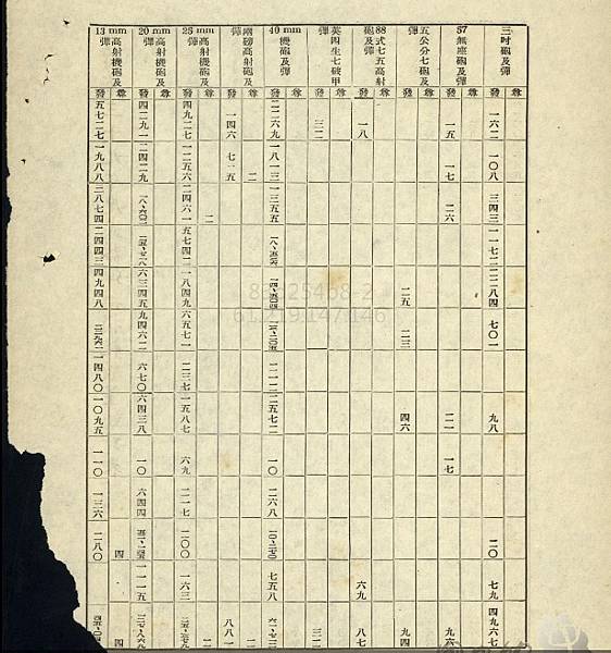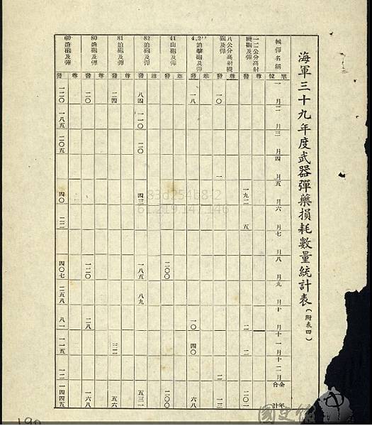 1949年度各式彈藥消耗,可見其火砲種類,口徑雜陳,並有不少陸軍所用之火砲.