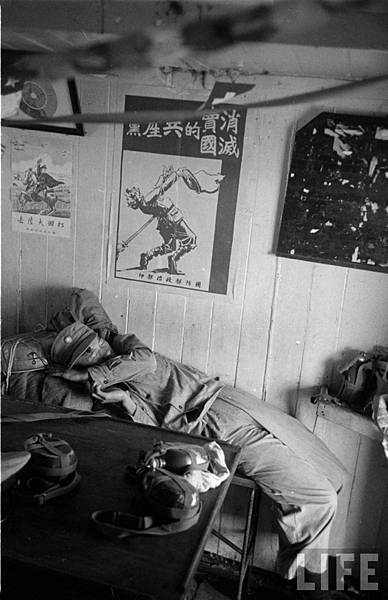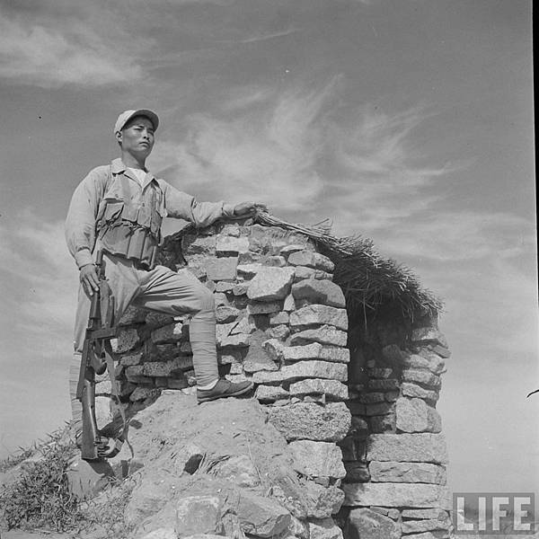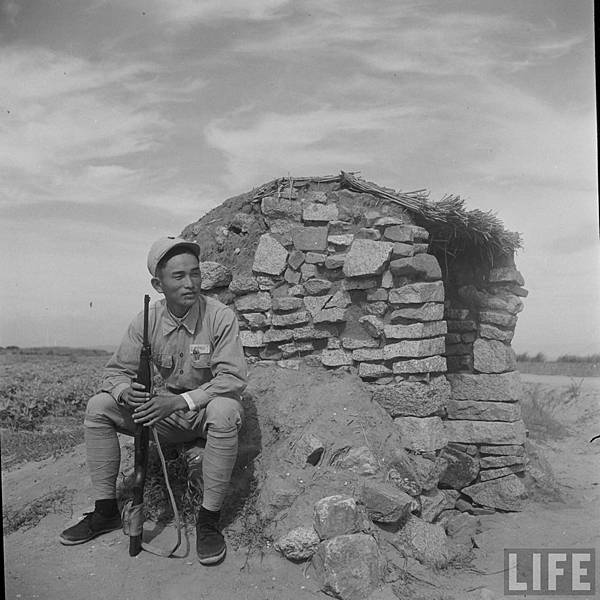戌守中的國軍士兵及簡陋的崗哨.持1928湯普生衝鋒槍,服儀比想像中整齊.